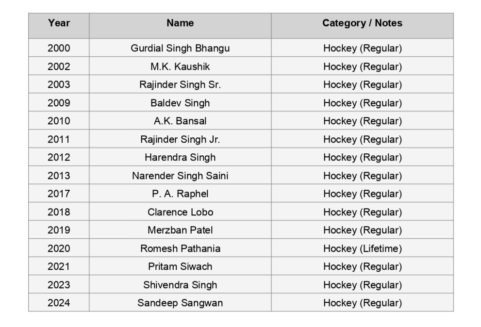DRONACHARYA AWARDEES